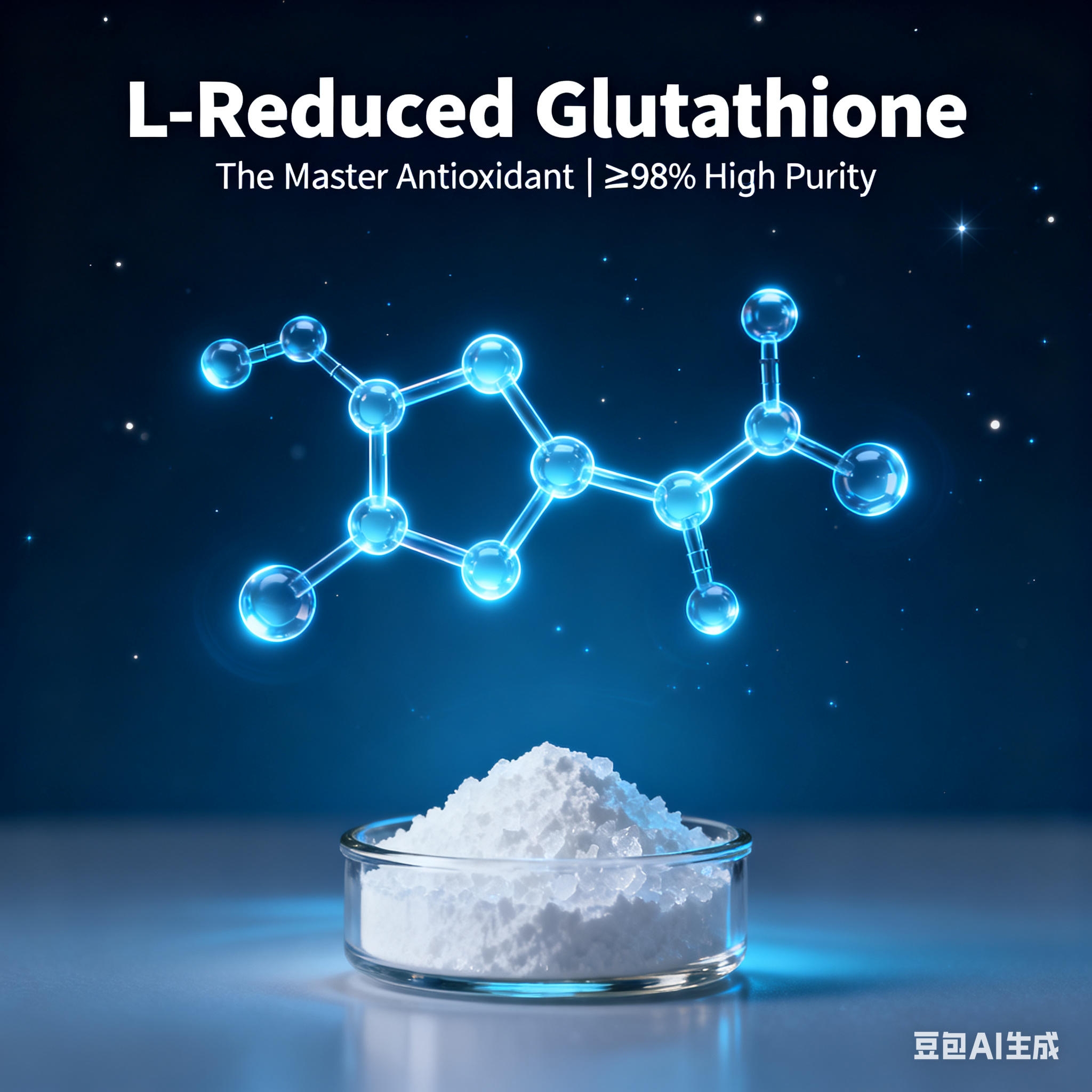 L-Glutationa Reduzida (GSH) é o principal antioxidante encontrado naturalmente em todas as células do corpo humano. Como tripéptido, o seu papel crítico na desintoxicação e na defesa antioxidante é essencial para a saúde e vitalidade celular.
